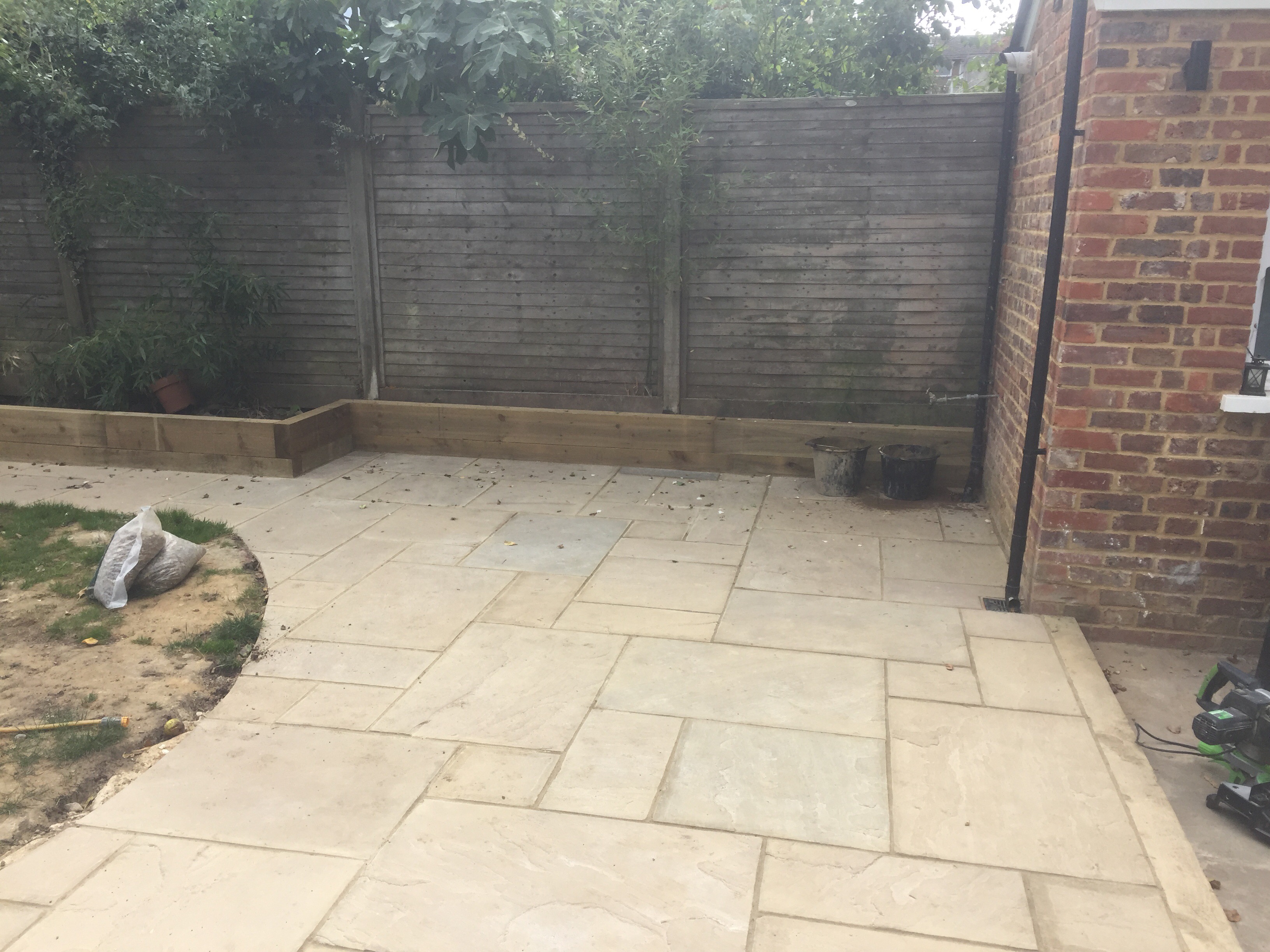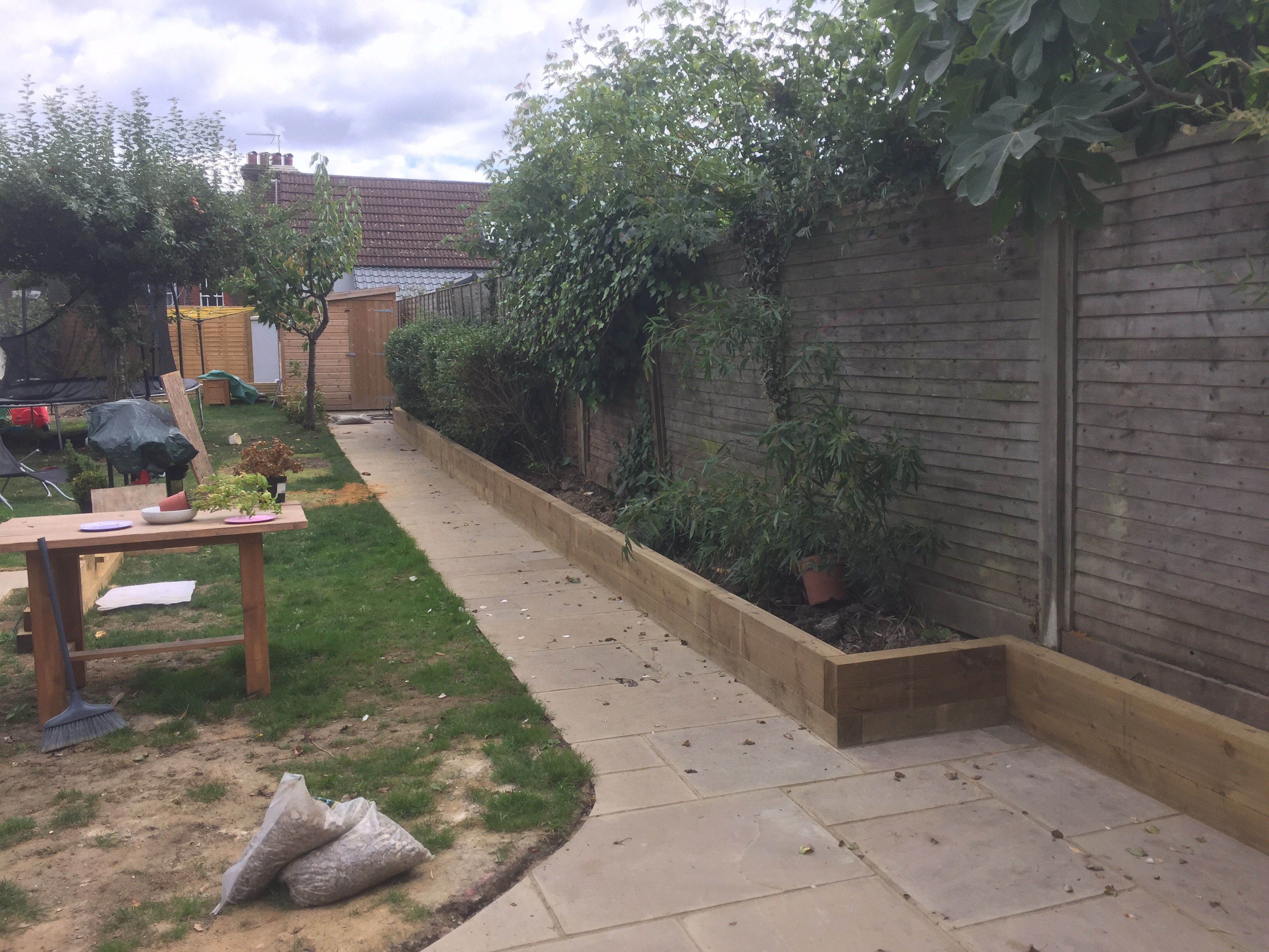 Patio and path with sleeper boarder..